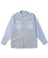 無地とストライプのコンビネーションで 一枚でも十分な存在感のある長袖シャツ。 秋にはこれくらい存在感のあるシャツが◎