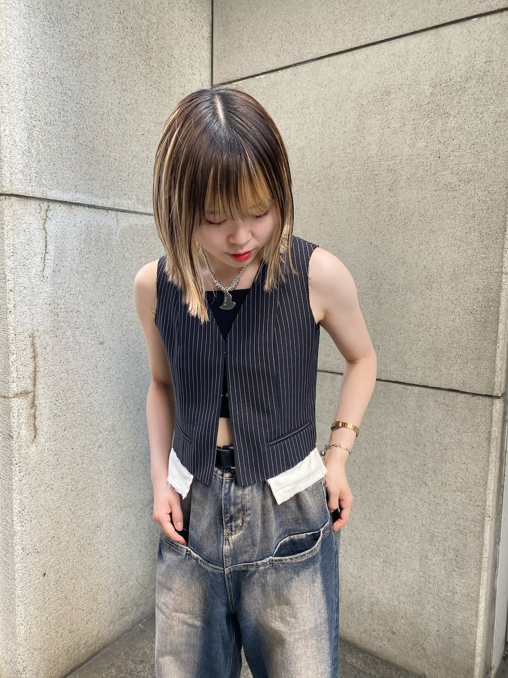 kanako(WHO'S WHO gallery 福岡パルコ店)のデニムパンツ「《UNISEX / サイズ展開あり》スラッシュポケットブラストワイドデニム」を使ったコーディネート