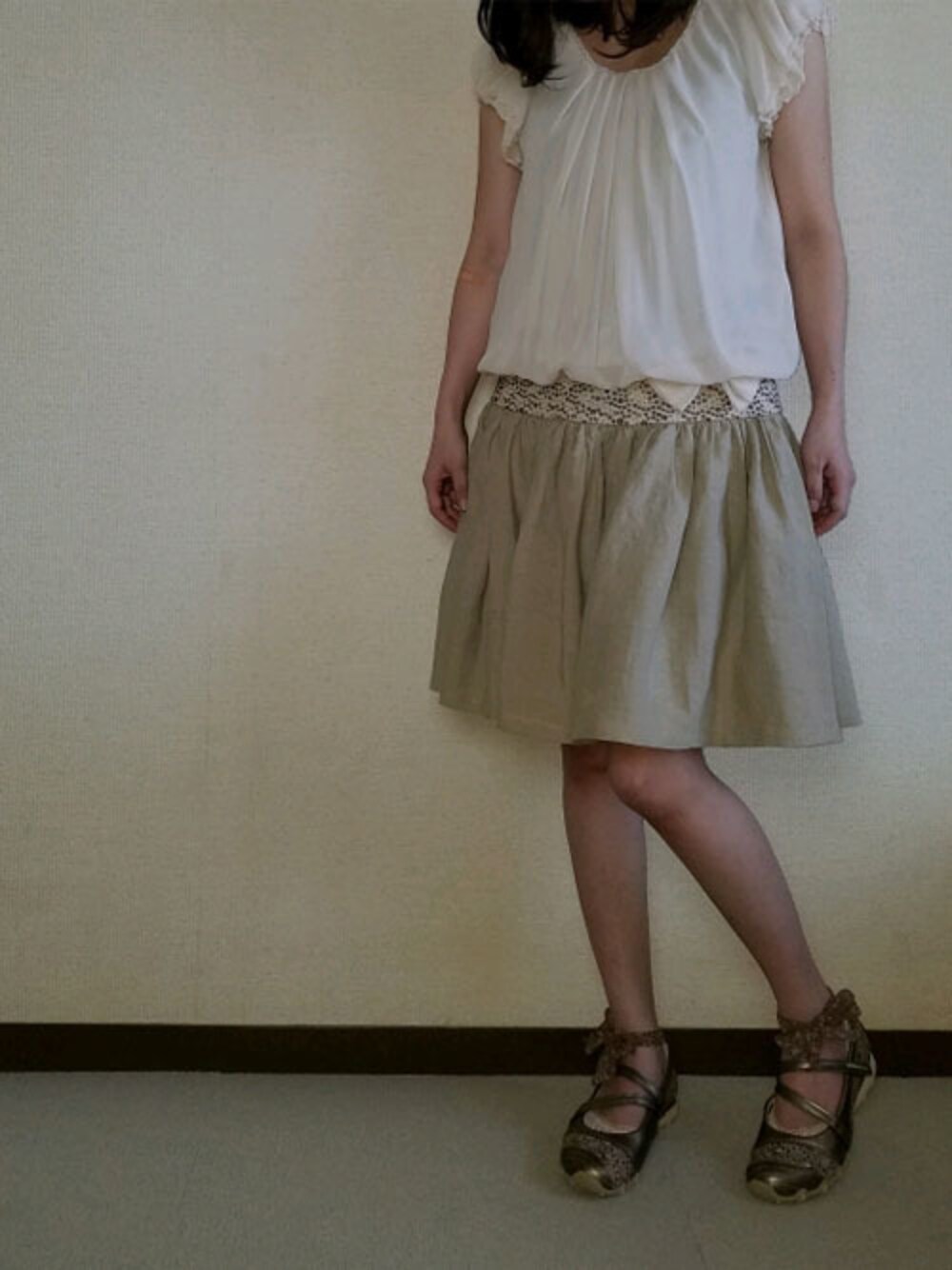Lisa(souhal)のスカート「【帯ボトムスシリーズ】ヒップハングのギャザースカート 本体:ベルギーリネン (ベージュ) I3 【送料・代引き手数料無料】」を使ったコーディネート