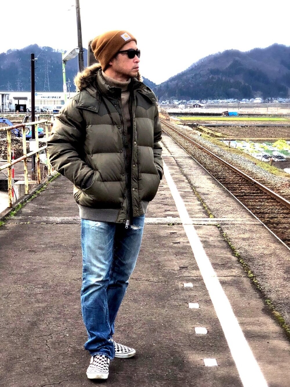 おはようございます😃 いつも見ていただきありがとうございます🎶 シンプルにタートルネックのニットにダウンジャケット デニムパンツにスリッポンで🎵 寒いからあったかくして過ごしましょうねー⤴️ では、また アデュー✨😁✨