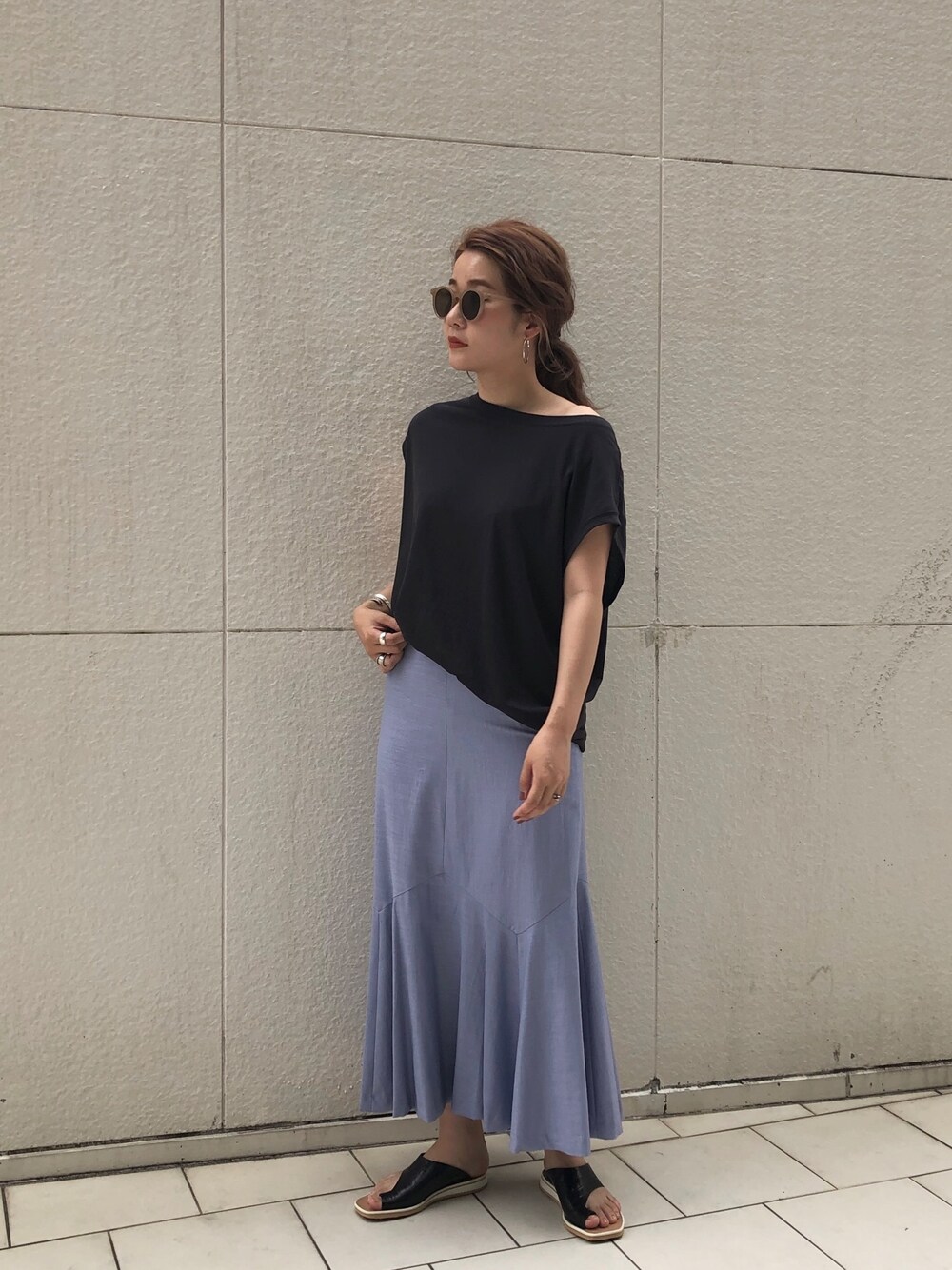 暑くなってきたので シンプルにカットソーを合わせたコーデ リネンのスカートも涼しく履けますよ♪