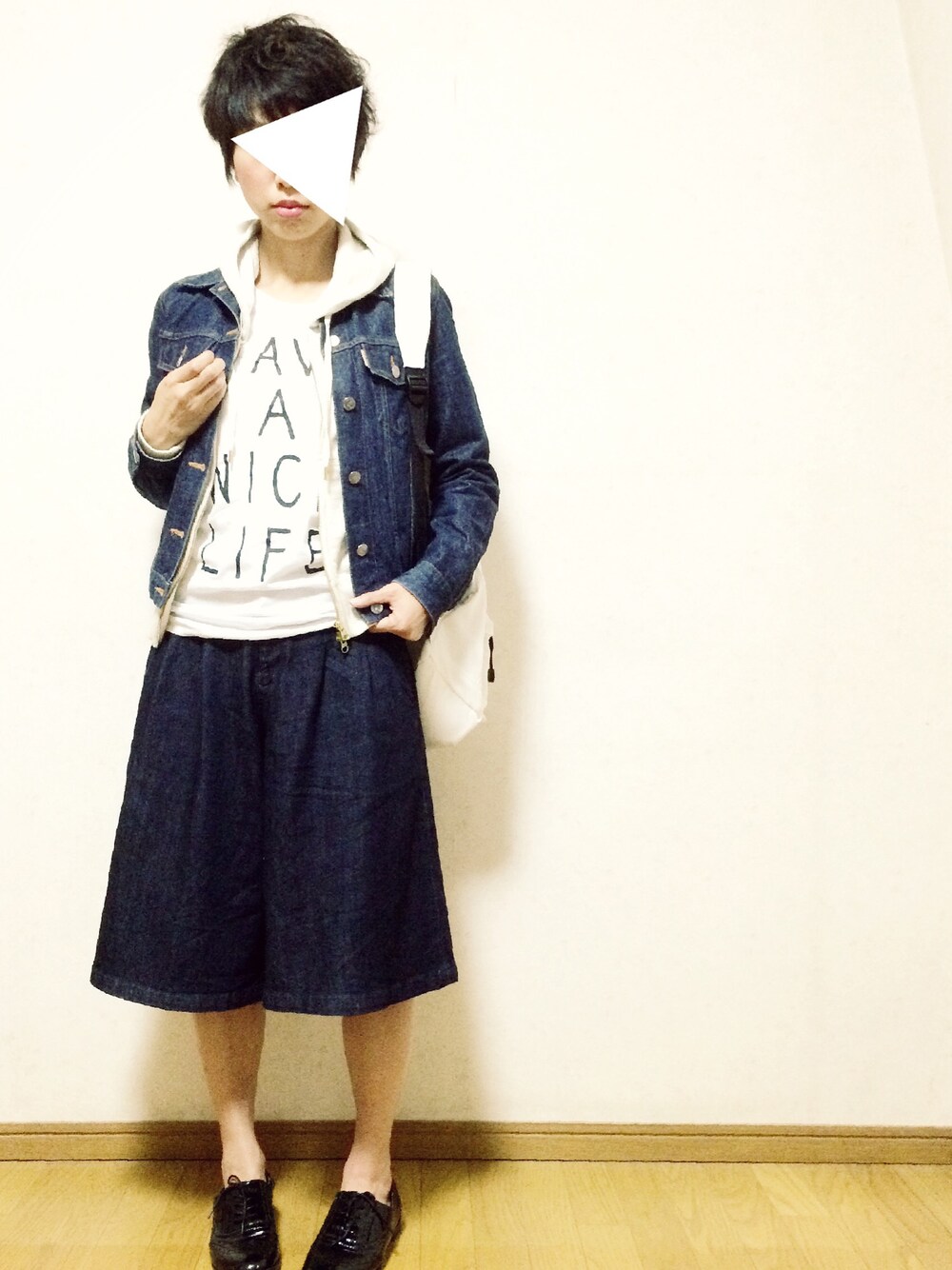 寒い…ので 春にやりたかったコーデを☆ あつくるしいくらいレイヤード☆ 今年は4-5月暑くて、春アウターの出番がなくて寂しかった😭 パーカのフードをアウターからぴょこん、と出すの好き♡ デニムジャケットは袖を折りかえすとバーバリーチェックでかわいいんですが 今日は折りかえし忘れました😓💦 折りかえしVer.が気になる方は小窓へGO! このガウチョは色移りがはげしくて、 意図してさわってないのに1日の終わりに爪が青くなるぐらいひどい💦 洗っても変わらずすごい色落ち力。💪 GUのとかに買いかえてしまおうかといつも悩むんです。