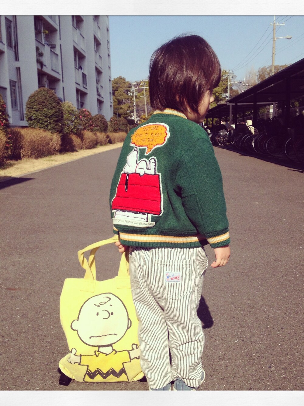 ファミリアのスタジャン 手作りのヒッコリーパンツ バックアレイのチャーリーブラウンバッグ