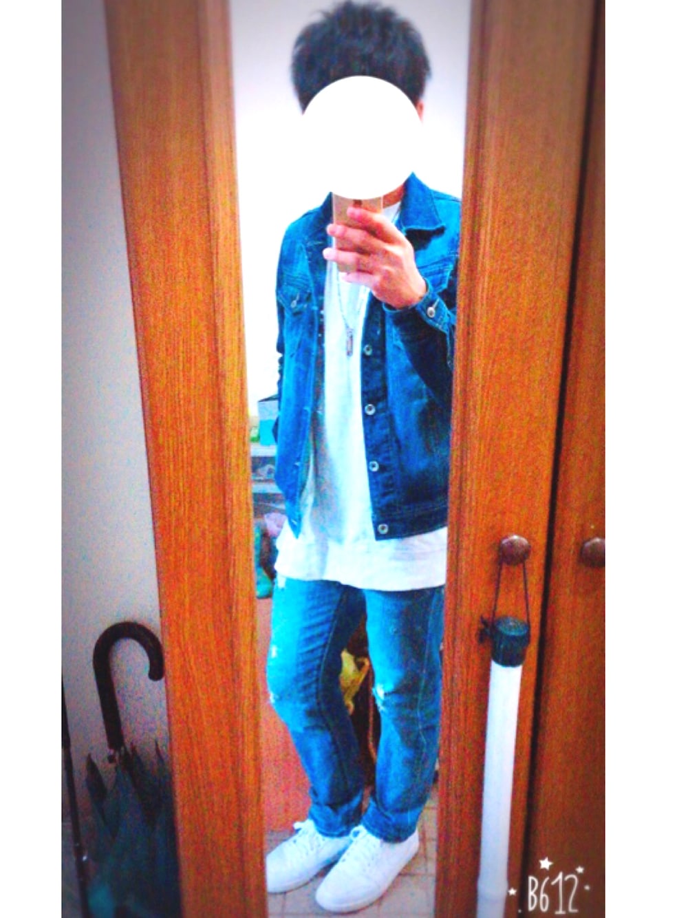 デニム×デニムにしてみた❗️ かなりカジュアル系だけど、 いい感じ😊😊 あっ!!噛み切りました! かなり短くしました笑 ではまたね( ^_^)/~~~