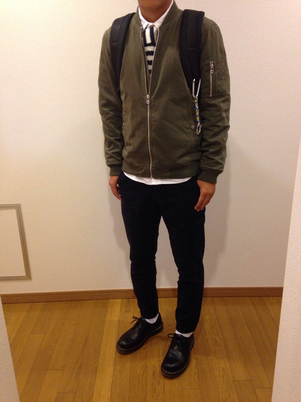 MA-1をキレイめに合わせたコーデです! 白シャツを中に着て棒タイも合わせました またいつものパンツでごめんなさい笑 めっちゃハマってしまいました。