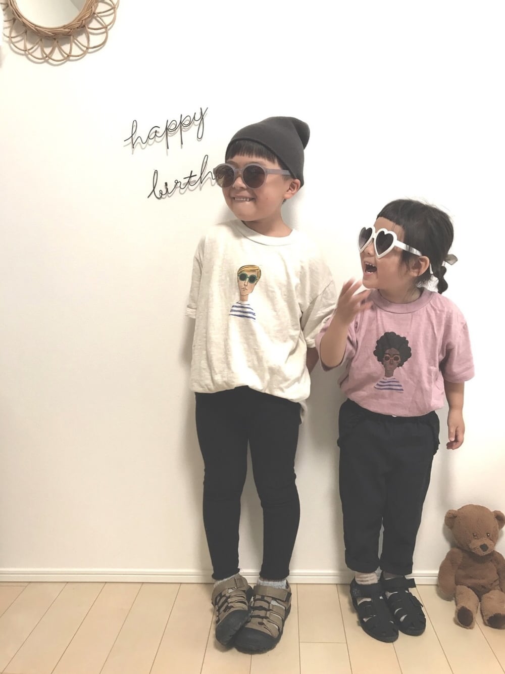 覗いて頂きありがとうございます💖 お気に入りのTシャツ😎 イラストに合わせて2人も😎 クレヨンしんちゃん見ながら撮影しました😂👍