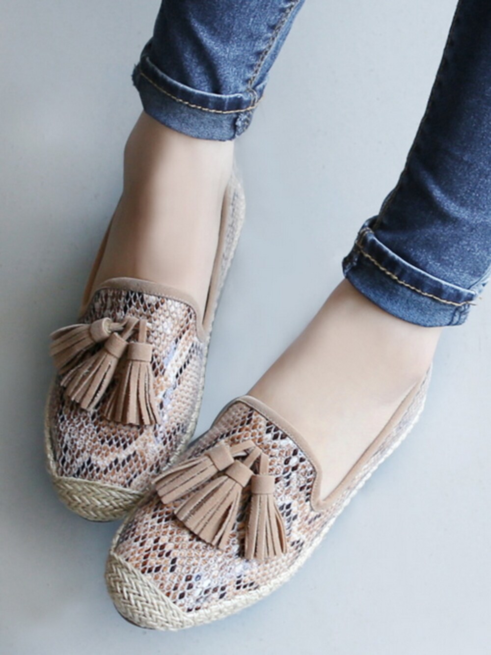 SOVOMALLのスニーカー「タッセル付きスネークスキンフラットシューズ」を使ったコーディネート