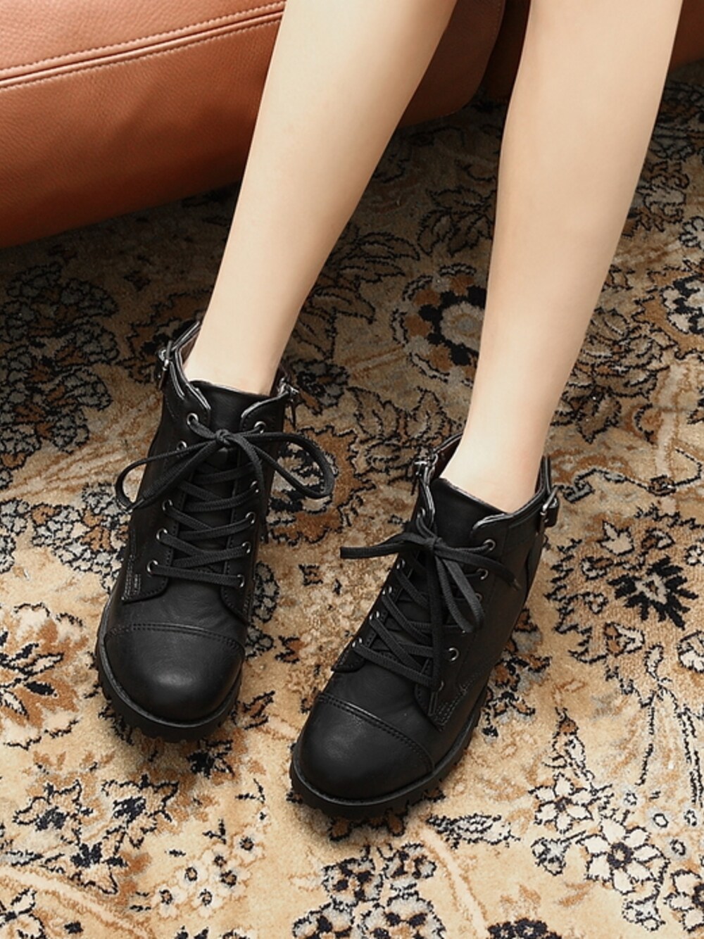 SOVOMALLのブーティ「ベルト&スタッズ装飾ウォーカーシューズ」を使ったコーディネート