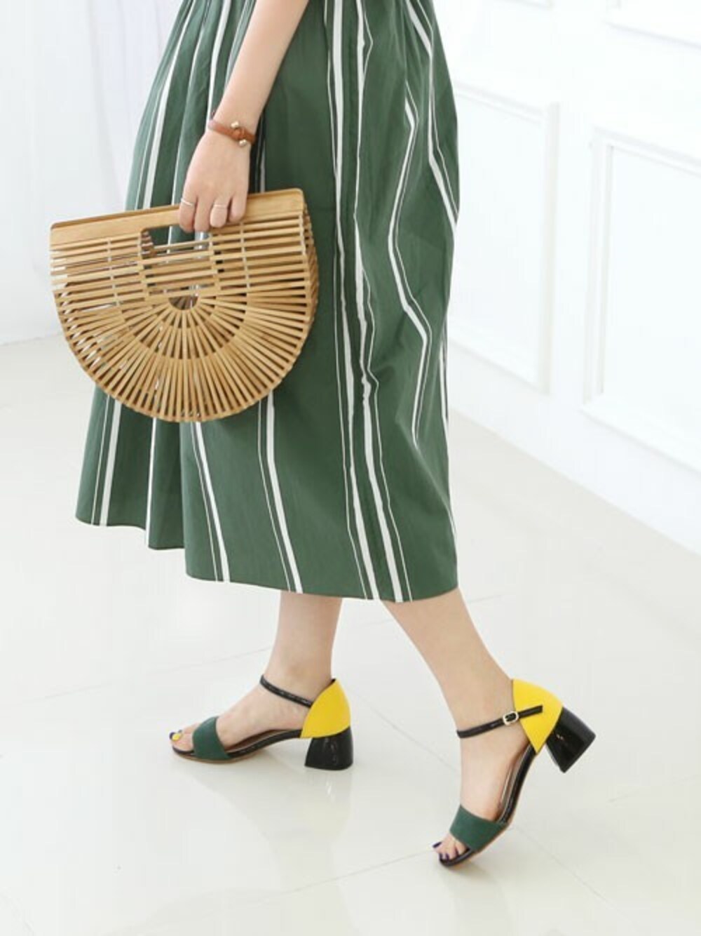 配色チャンキーヒールサンダル 安定感あるチャンキーヒールを使用したアイテム。 露出度が高く、涼しげな印象を与えてくれます。 カラー: ブラック、イエロー、カーキ サイズ: 225 ~ 250mm ~*~*~*~*~*~*~*~*~*~*~*~* ★新着商品10%off★ ★韓国高級手製靴通販★ ★レビューを書いて最大2000pがもらえる★ ★会員登録で500円p+送料無料クーポンがもらえる★ ★7月中に、ご購入された方全員に、もれなくフットマスクをプレゼント★ sovomall.jp