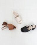 ソヴォのサンダル「フェイクストローミドルヒールスリングバックサンダル」を使ったコーディネート