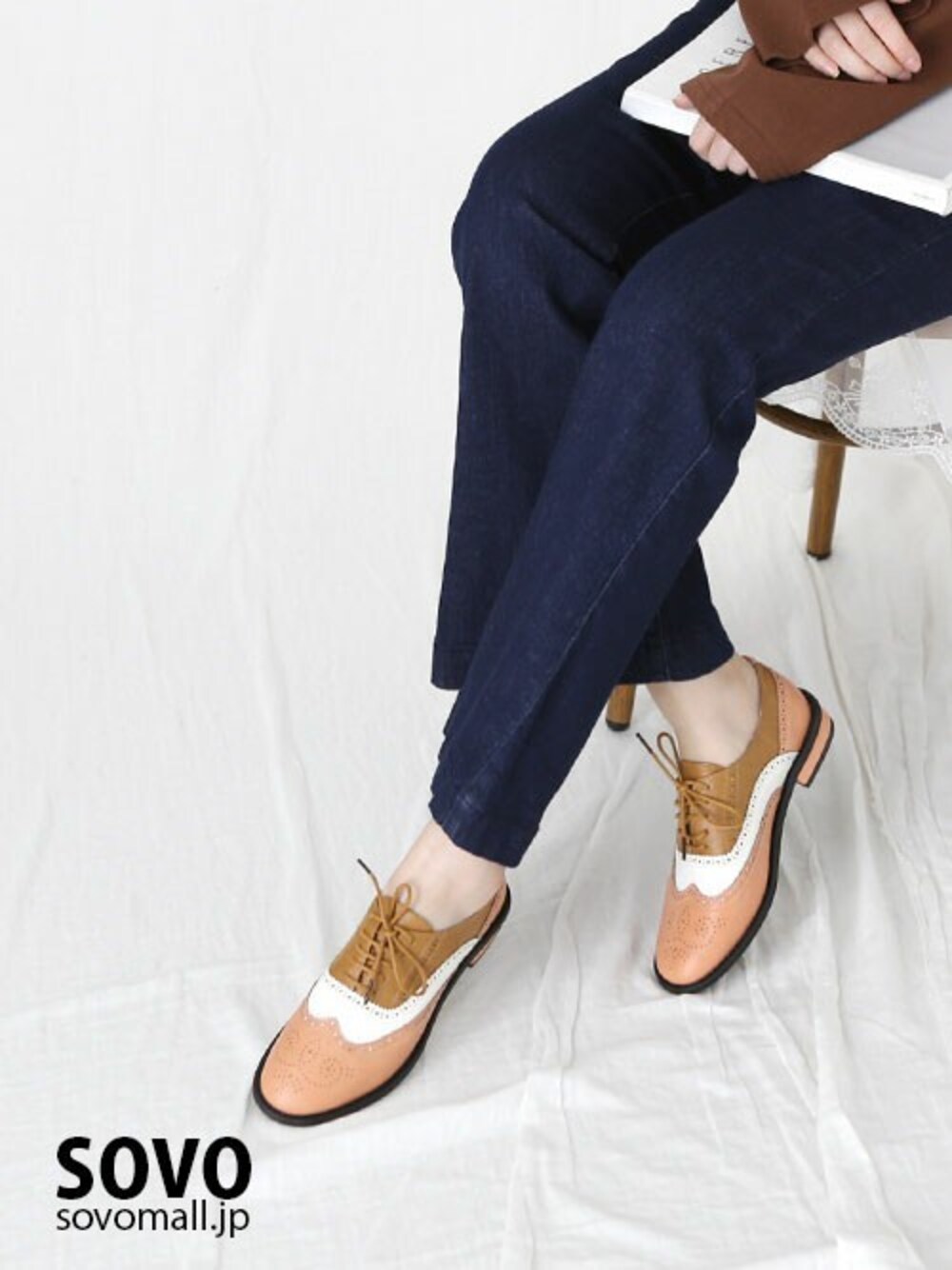 配色オックスフォードシューズ リボン結びのレースアップデザインで、ガーリーなムードをプラス♡ 足の疲れにくい柔らかな生地を使用した嬉しい一足です。 スリムなフォルムで足元をスッキリと見せてくれます。 カラー: ブラック、ブラウン サイズ: 225 ~ 250mm ~*~*~*~*~*~*~*~*~*~*~*~* ★2017年秋新商品10%off★ ★すぐに、お届け!即日出荷商品コーナー★ ★レビューを書いて最大2000pがもらえる★ ★会員登録で500円p+送料無料クーポンがもらえる★ sovomall.jp