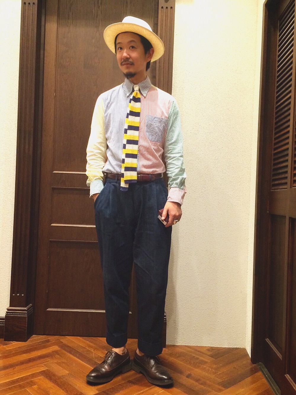 パナマハット BORSALINO シャツ BLACK FLEECE BY Brooks Brothers ネクタイ griff パンツ artcomesfirst 靴 tricker's