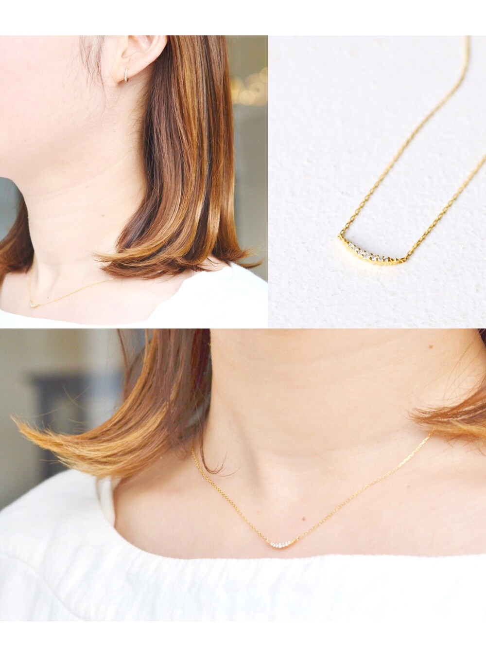 sowiのネックレス「【K18・ダイアモンド】YGクレセントムーンネックレス」を使ったコーディネート