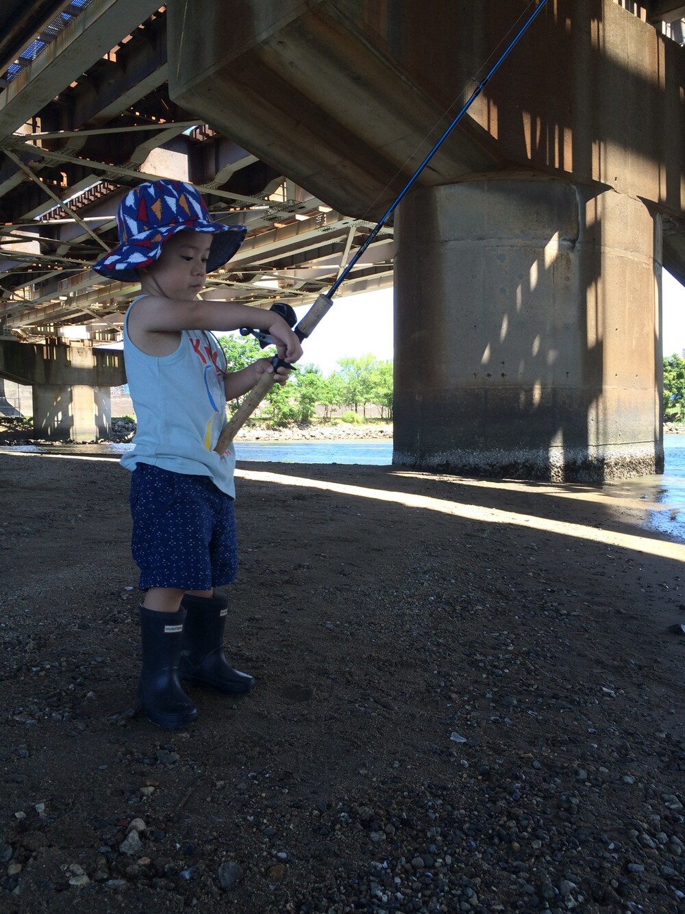 今日は虫捕り&魚釣り✨ なかなか釣れないけど楽しかったみたいですね✨ 殿様バッタの子供捕まえて虫かごに入れてずっと眺めてますwww