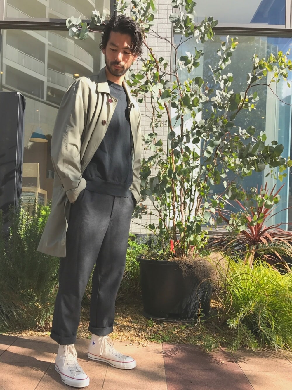 おろしたてのオールスターが穿きやすくていい感じです。 ブルックスのステンカラーコートはナイロン素材で軽くて風を通さない優れもの。インナーは厚着して乗りきります...