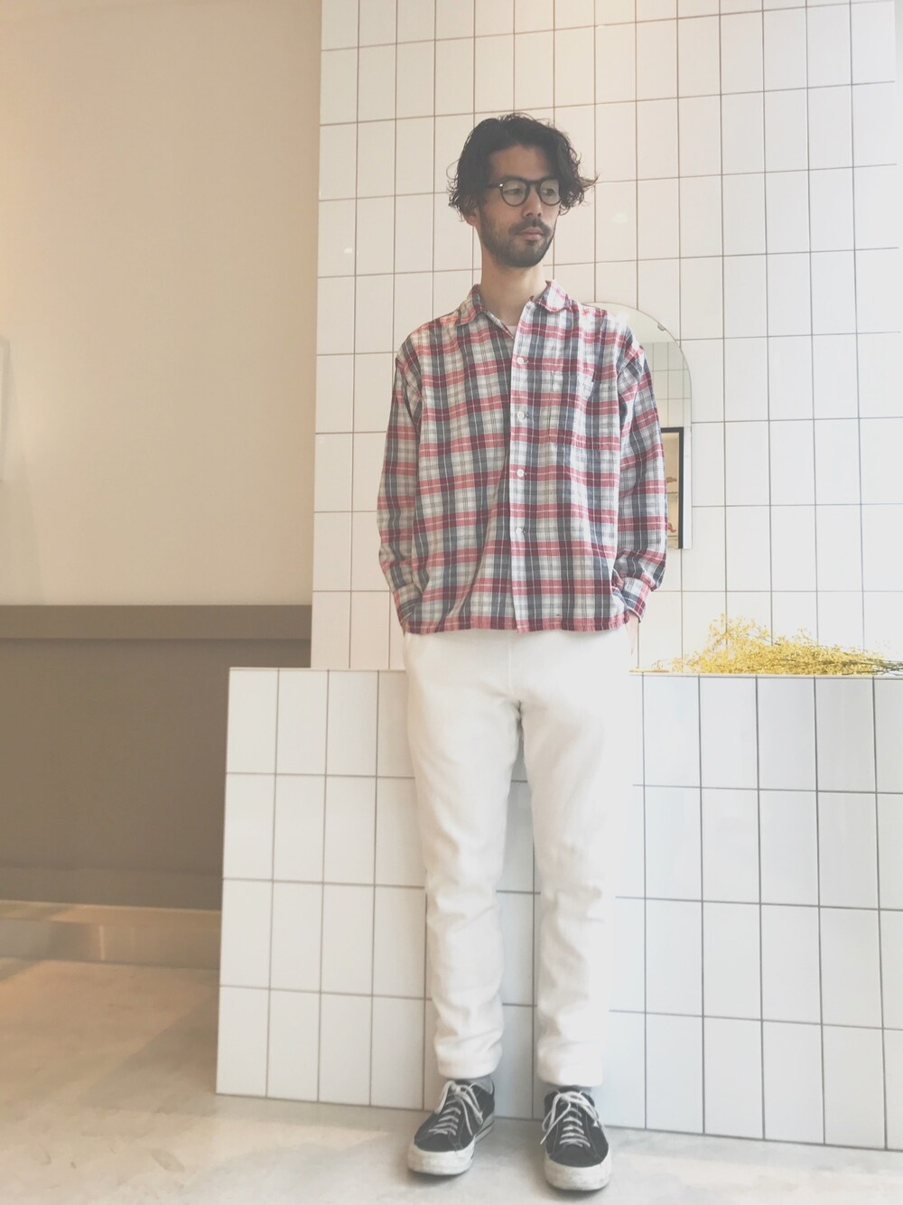 今日は暖かいので、春っぽく。 60sのシャツはライトなチェックとボックスシルエットがお気に入りです。