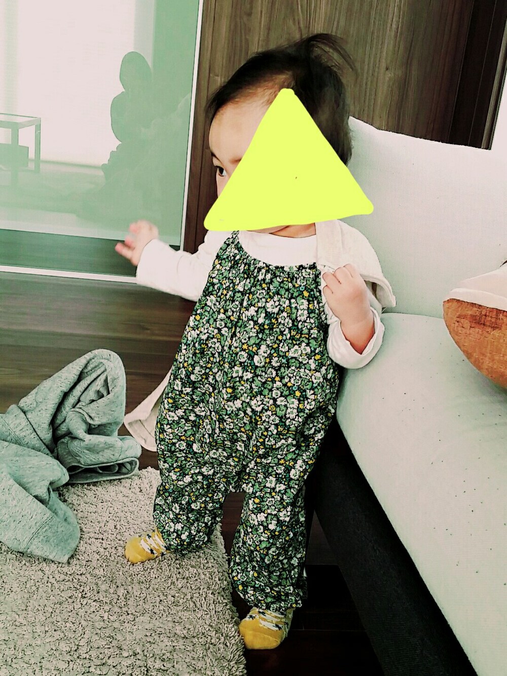 寝癖がすごいなぁ…w 足元にお父さんのスウェットが転がってるね…( ´_ゝ`)w