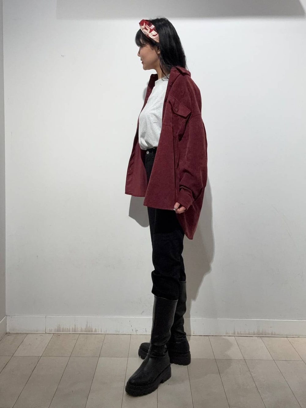 ⭐赤コーデ  ̄ ̄ ̄ ̄ ̄ ̄ ̄ ̄ ̄ ̄ ̄ ̄ ̄ ̄ ̄ ̄ ̄ 挑戦しにくいカラーアイテムはこう着る! 【トップス】 赤は派手で挑戦しにくいけどボルドーなら秋らしく大人の女性ぽいからチャレンジしやすい✊🏻 コーデュロイ素材も秋らしさ満点💯 丈感長めのシャツなのでお尻も隠れちゃう嬉しい😎 【ボトムス】 細身のストレートデニムはストレッチ性抜群! そのまま履くのもいいけど今回はロングブーツに合わせてみた! 冬は靴とパンツのカラー合わせると足長く見えるよ✨ ご覧いただきありがとうございます^^ インスタでもコーデ載せてるので見にきてください♡ Instagram▶︎▶︎