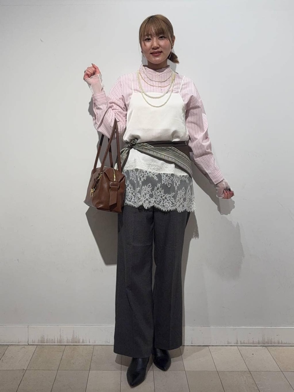 ご覧いただきありがとうございます^^ 170cm/骨格ストレートのそよすけです! ⭐春先取りコーデ  ̄ ̄ ̄ ̄ ̄ ̄ ̄ ̄ ̄ ̄ ̄ ̄ ̄ ̄ ̄ ̄ ̄ 【トップス】 シワになりづらいお手入れ簡単なシャツ👔 まだ寒いのでインナーをレイヤードして着るのがオススメ! レースキャミはキャミワンピ風に! 骨ストは太って見えちゃうのでスカーフでウエストマークをしてあげると細見えするよ✨ 【ボトムス】 楽チンのワイドパンツ! ワイドパンツだけどタックが入っていてセンタープリーツが強調されるから脚長効果も!! インスタでもコーデ載せてるので見にきてください♡ Instagram▶︎▶︎