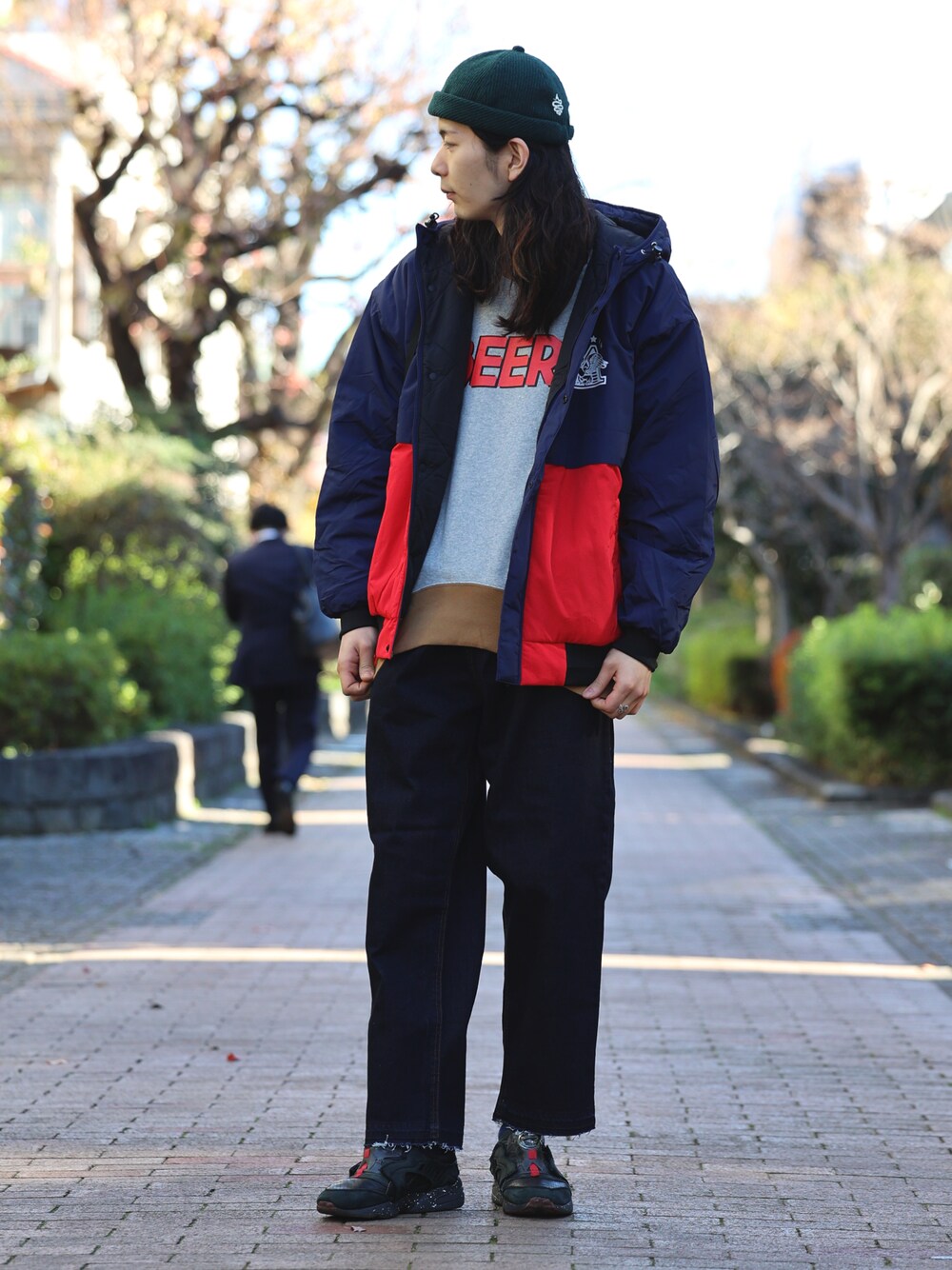 ネイビースタイル。インナーのBeerが光ります。