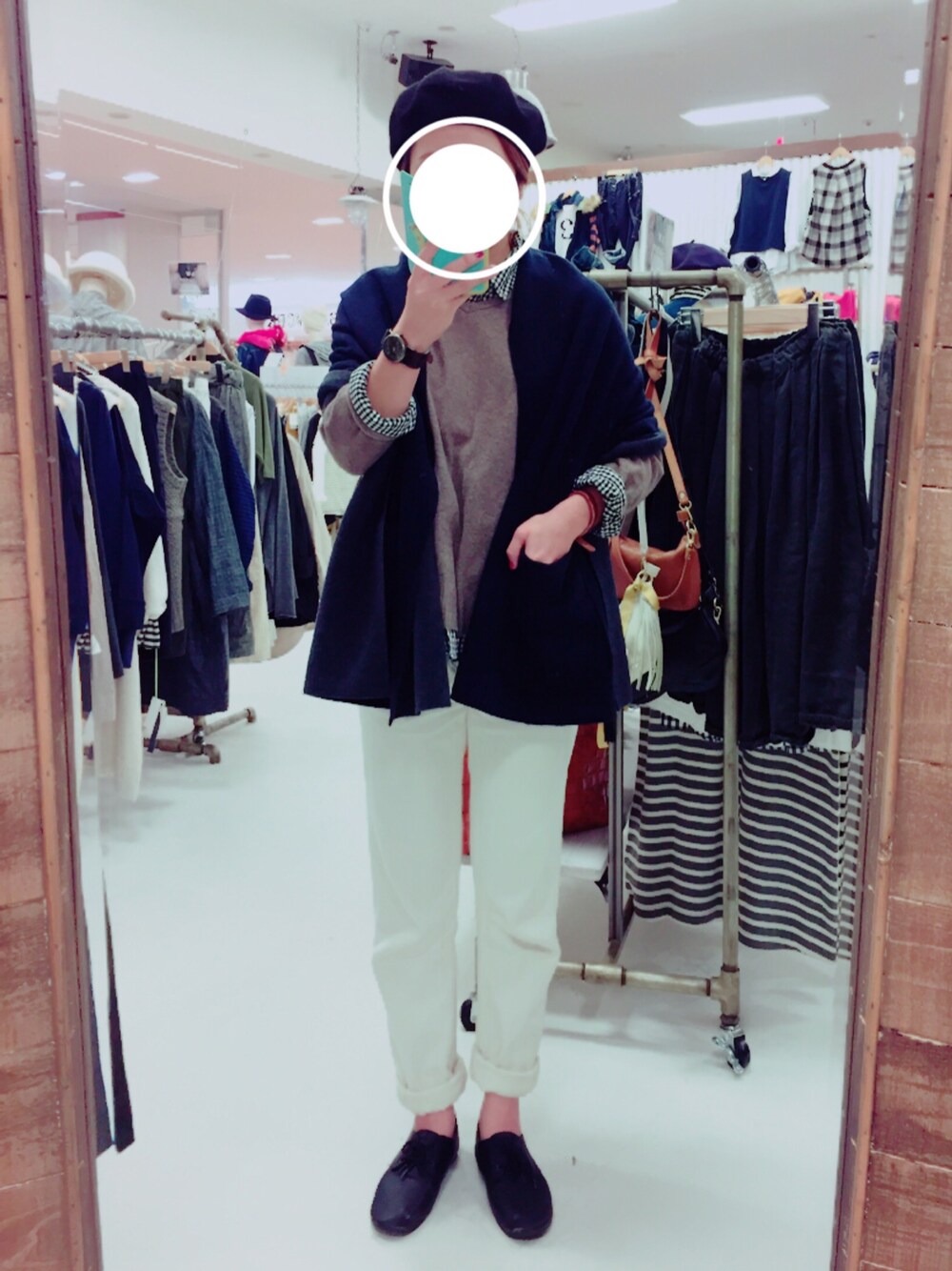 ストールにでっかいポケットついてるから、ベストみたいに羽織れる〜〜♡