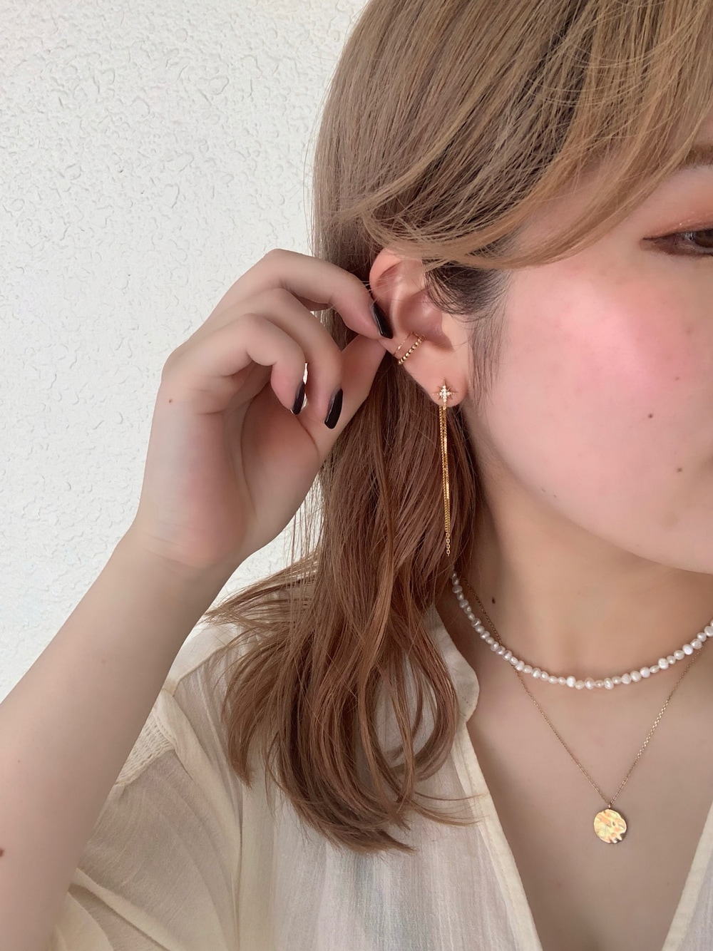 カリヨンの新作ピアス✴︎ キャッチにチェーンがついているので、お手持ちのピアスに付け替えて楽しむことも◎ マリスのネックレスはマンテルデザインになっているので、マンテル部分を前に持ってきて使うこともできます! ネックレスはどちらもリアルバイアイテムです♩