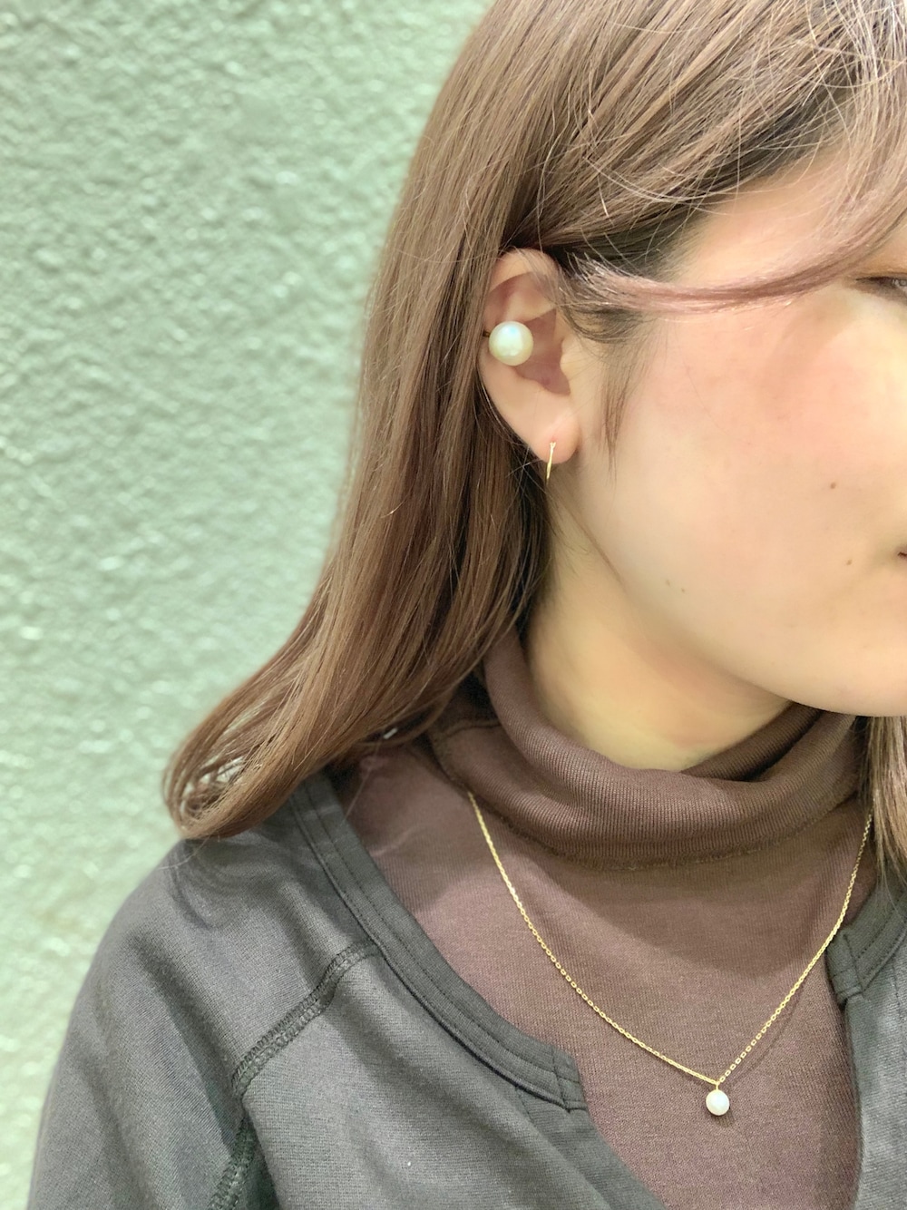 冬もパールがかわいい♡ イヤカフ3点セットの大きなバロックパールのイヤカフをつけてみました! ピアスはシンプルなデザインでK18素材なのでさまざまなシーンに合わせやすく、また変色もしにくいので長く楽しめます♩ ネックレスは3way仕様!
