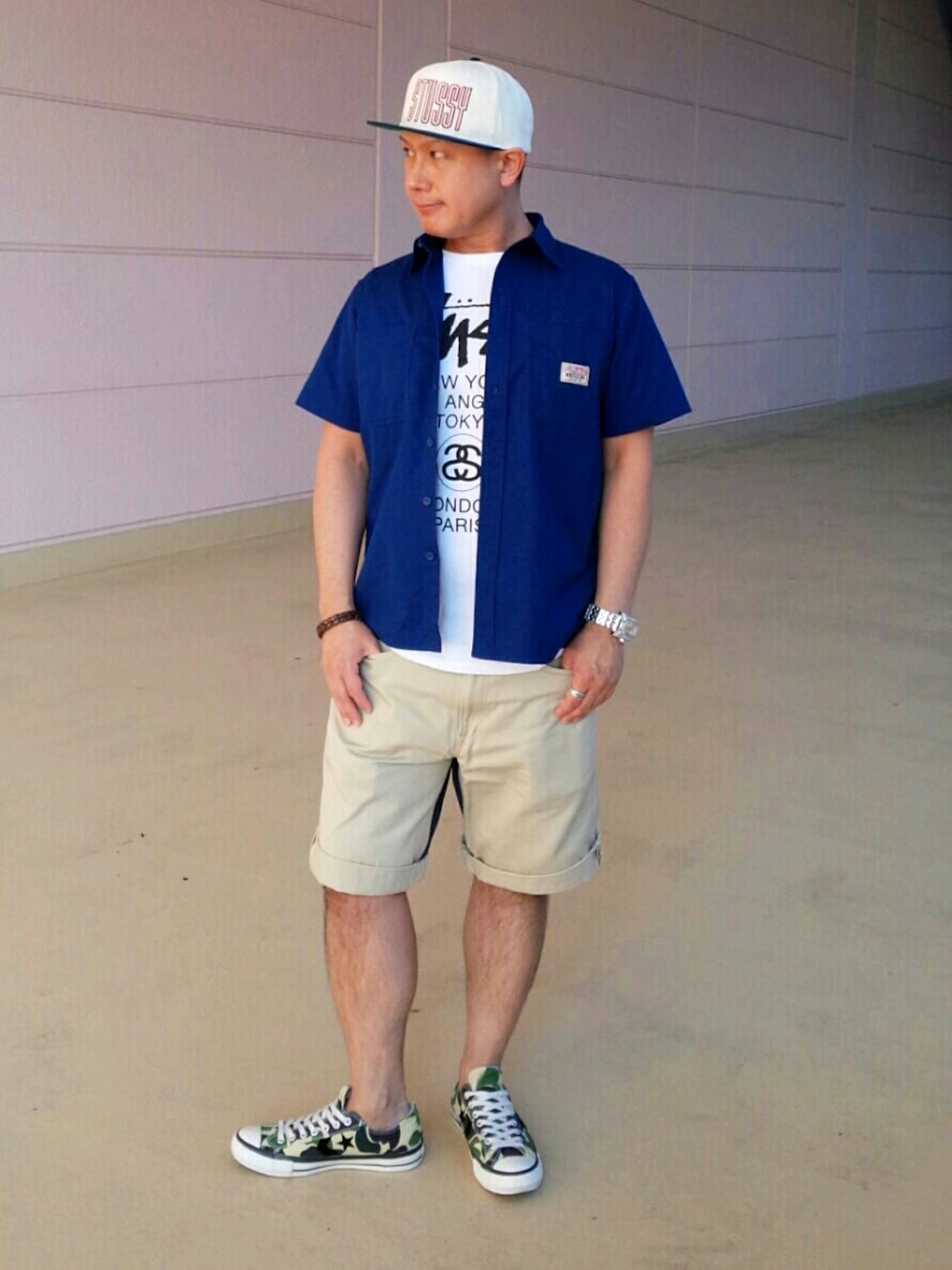 今日はけっこう涼しくて、Tシャツ1枚じゃ心細かったのでワークシャツを上に羽織って出かけました でもボトムはやっぱりいつも通りにショートパンツ笑 このTOMMYのパンツはだいぶ昔にセールで買った物で、久しぶりに履いてみたらオーバーサイズで選んだようなのでシルエットが今っぽくなくて全然しっくりこない!! でも着替える時間もなかったので、裾をだいぶロールアップして無理矢理小さくしてあせって家を出ましたw