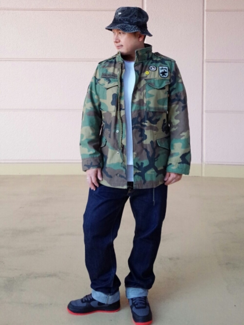 前から狙っていたジャケットがやっと発売されたのでさっそく着てみました 本当は取り外しが出来るキルトのインナーが付いてるんですけど今日は寒くないので外して1枚で着用 充分温かい(^^) デニム生地のハット 白無地Tとジーンズでシンプルに合わせました~! おわり(^_^)/