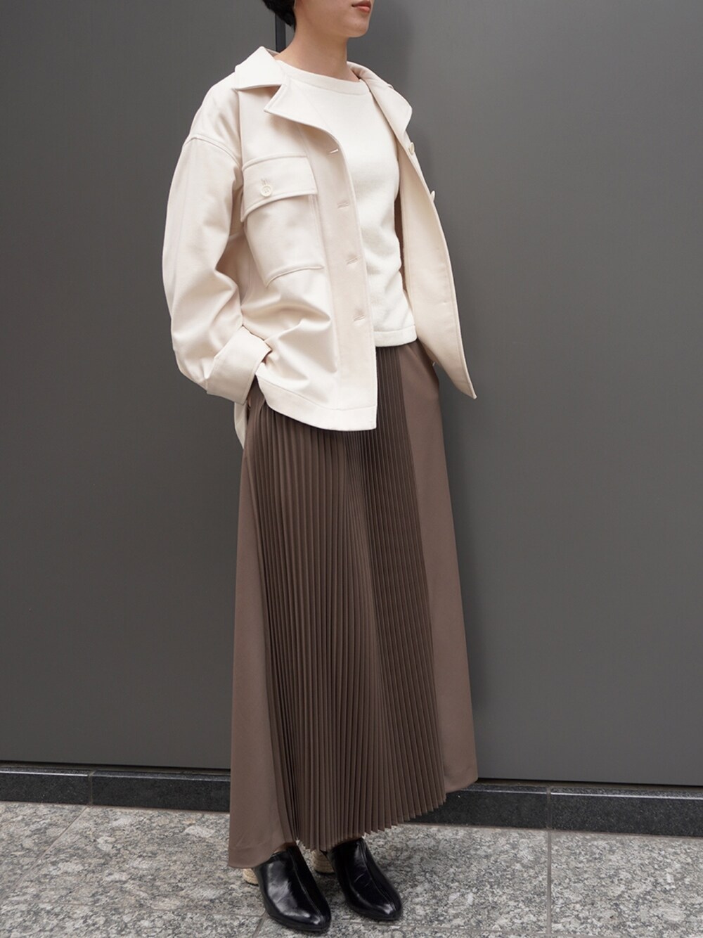 Park Slope_official(NEWYORKER)のダウンジャケット/コート「Super160s Wool Light Melton CPOアウター」を使ったコーディネート