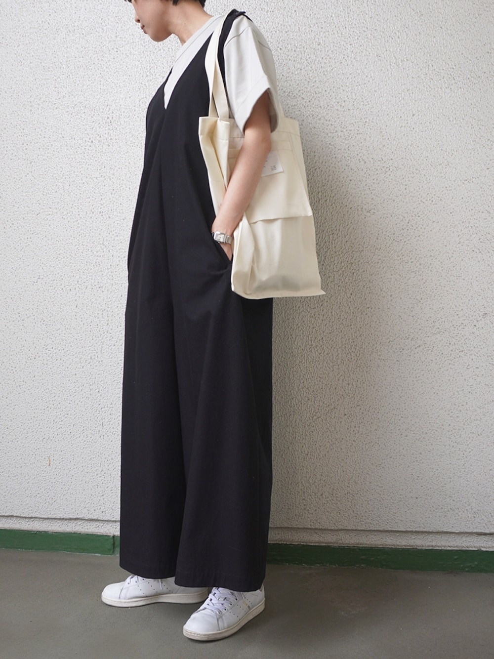 SIPULI_official(NEWYORKER)のサロペット/オーバーオール「High Twist Cotton Twill ワイドシルエットサロペット」を使ったコーディネート