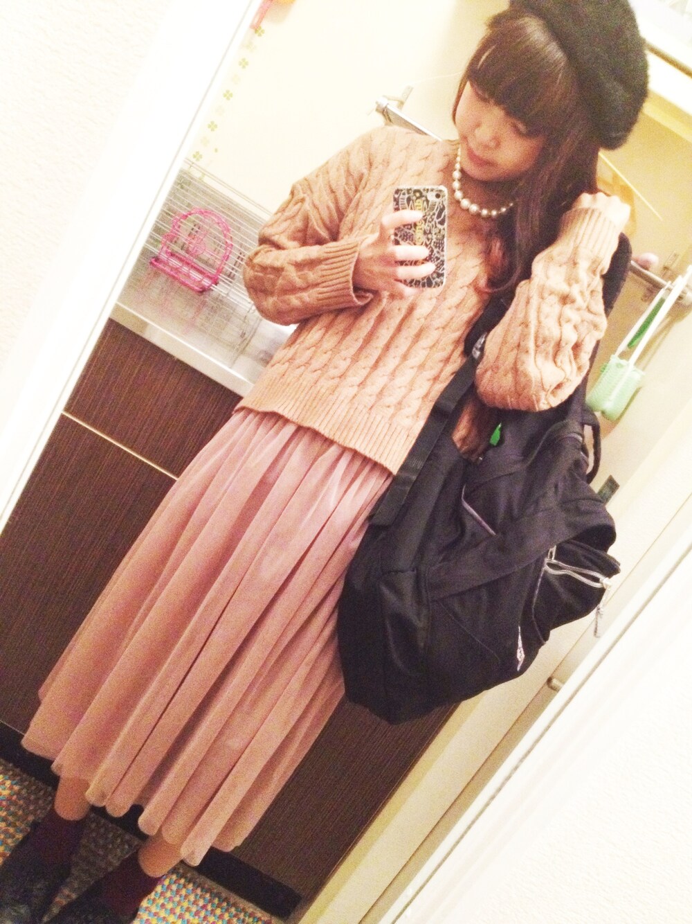 秋コーディネート🍁 さむいさむい〜(*_*) RANWAY CHANNELのセールで買った dazzlinのニット、可愛い〜❤︎❤︎ 色も絶妙でした(^。^)♩ なんと1800円くらい、、、。 セール最高。