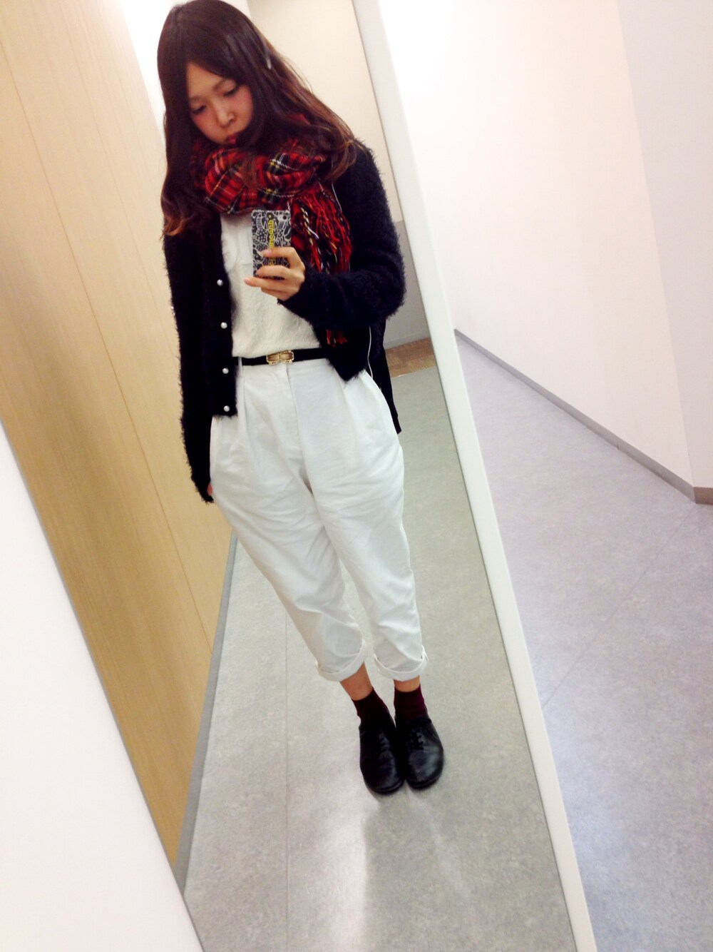 花粉でつらい、、、👃 天気予報で寒いと言ってたので もこもこカーディガン+ストールぐるぐる巻き で学校行ったら教室めっちゃ暑かったです。