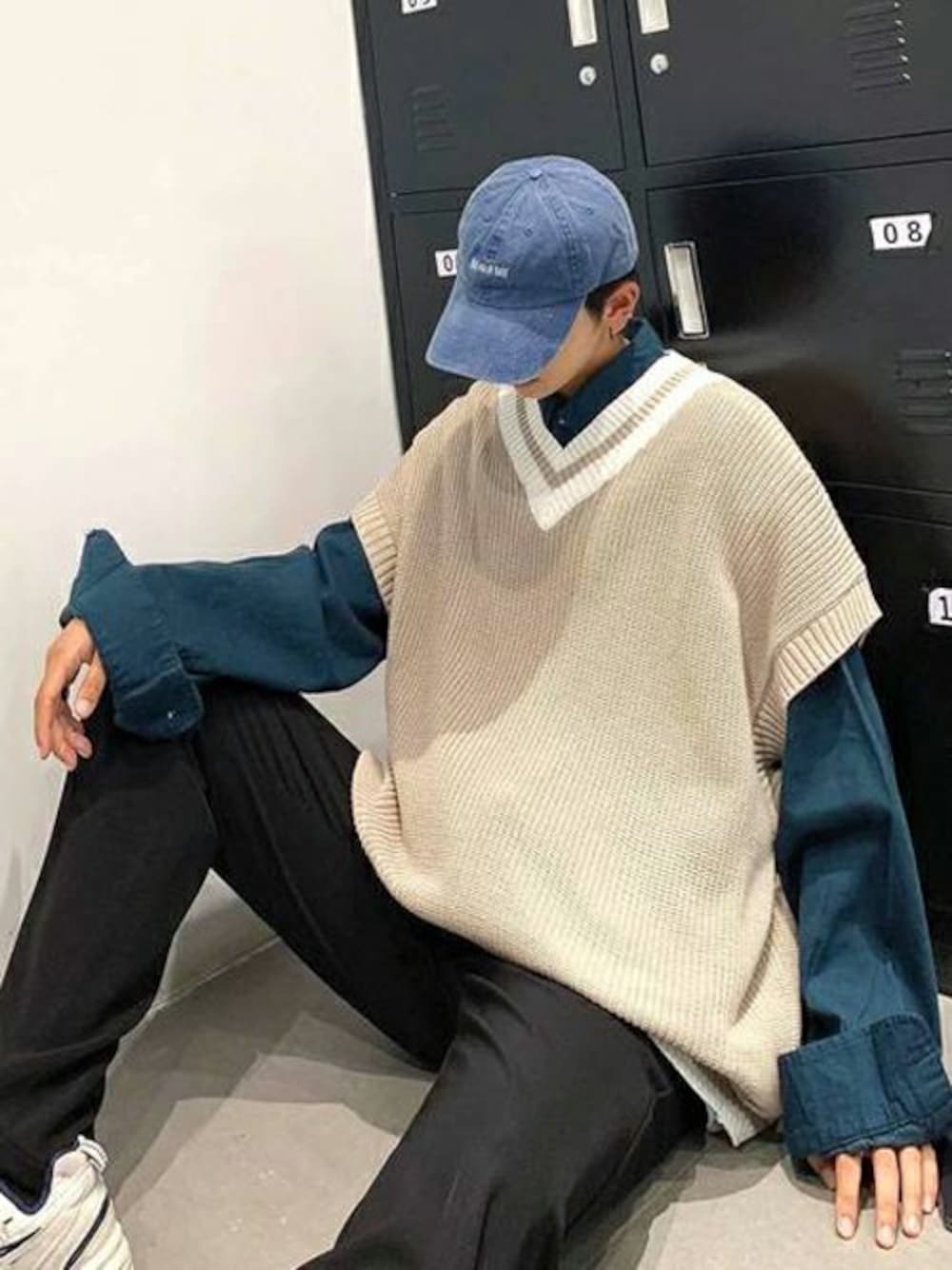 pppのニット/セーター「【neos -addictive design-】ルーズシルエット ビッグシルエット チルデンニット ベスト」を使ったコーディネート