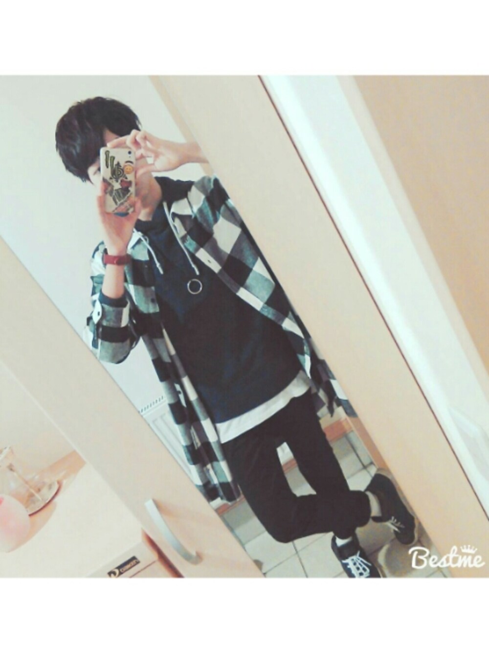 ロングチェックシャツデビュー💕 まだ着こなしがあんまりわからないです笑 ニットパーカー久しぶり✌ いいねとフォローよろしくお願いします🙏 フォロバします!!