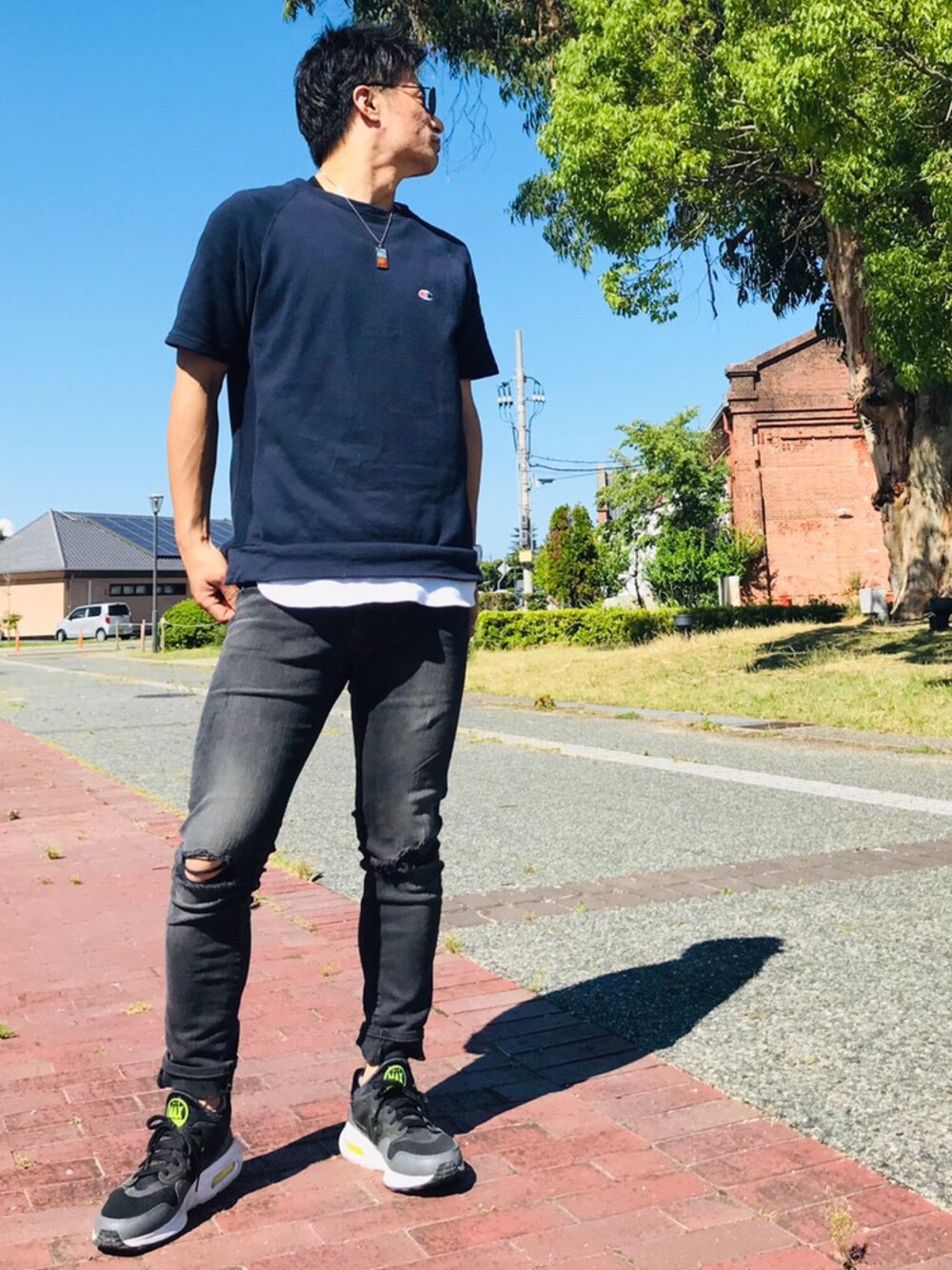 いつも見て頂きありがとうございます😊 久々の投稿! Tシャツは最近流行りのチャンピオン! これは直営店しか手に入らないらしいです。 生地とリブに一目惚れで購入^_^ H&Mのスキニーデニムは安いし履き心地良くてお気にです^_^