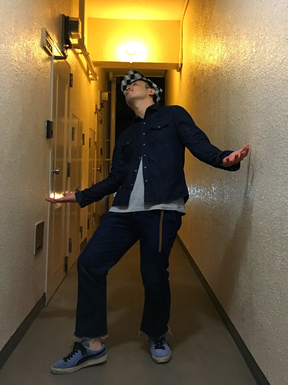 暗すぎて、デニムonデニムが分からない。 今朝、レッサーパンダの被り物したおじさんが同じマンションでない事をサンタさんにお願いしよ。