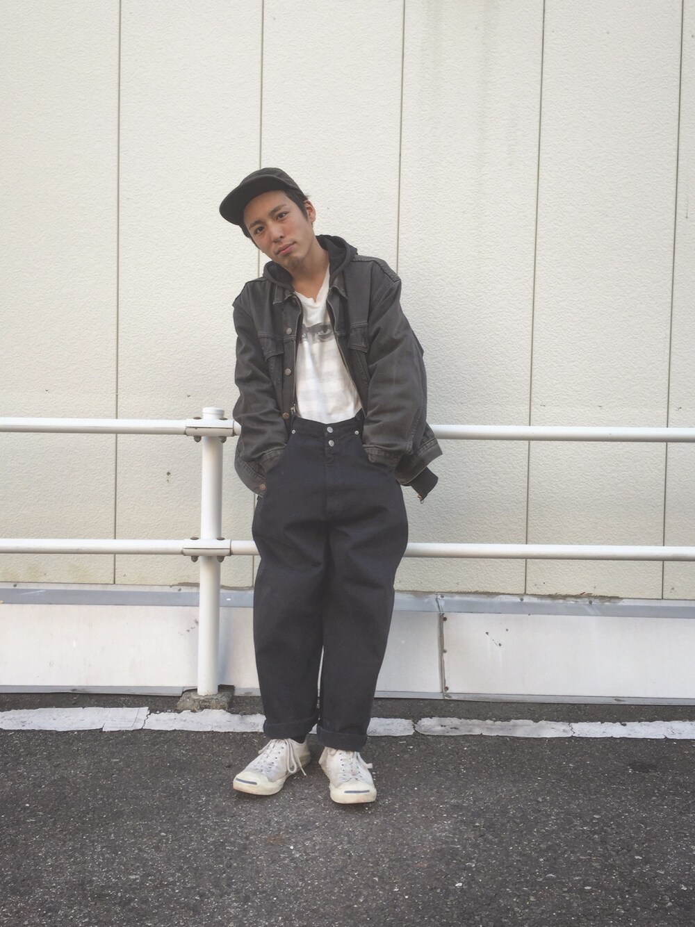 西岡達也のスニーカーを使ったコーディネート