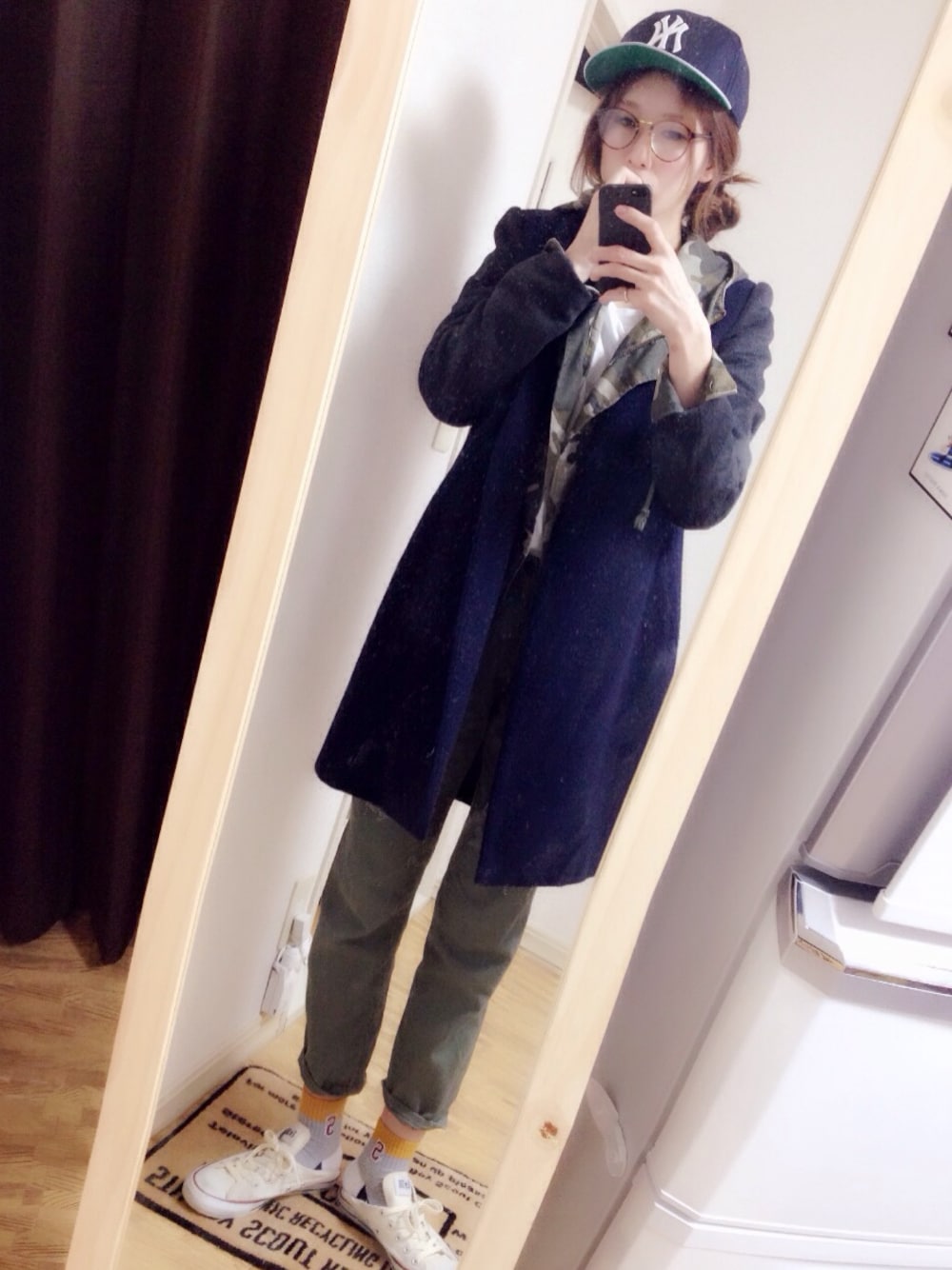 まだまだ寒いー! てなことで カモフラの薄手のアウターに エゴのアウターレイヤードして フードや襟がカモフラのコートですか?的な 感じにしてみました♪ 寒がりには先取りはまだきついー ってなわけでフリマ行ってこー♪
