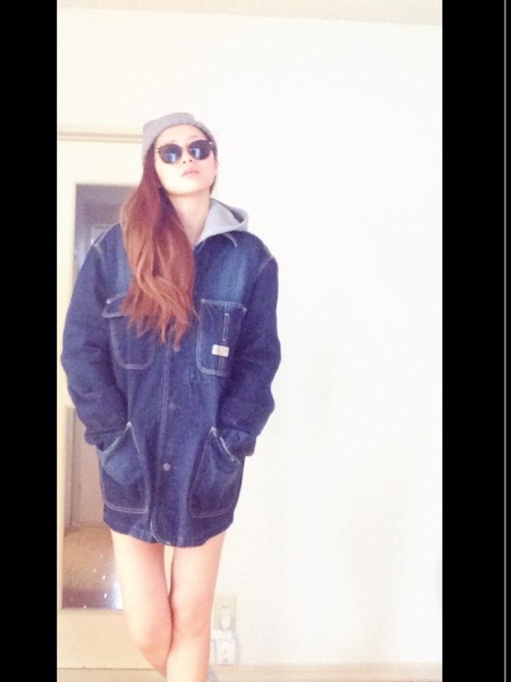 →彼のアウター借りました♡ 的なね。妄想です 古着屋で購入したbigなデニムアウターを 着たかった、ただそれだけの。 それとWEARシックなのか 服を撮ってのせたい衝動にかられます(笑) 息子が体調よろしくなくて インドアやったため ノーメイク、ノーヘアアレンジで なんとなく撮ったやつ。 なので脱いだらすごいことなるやつ。 宅急便さんきたら出れないやつ。 変態か。 ノーメイク眉毛をどーにかサングラスで 隠したい、、そんな角度探してたら 鼻の穴がこんにちは。 そんな、しーくれっとだらけの1枚 シェアとか申し訳ない(笑)自己満です とりあえずこれにショーパンはけば スケボーはできる! 明日は絶対スケボーする♪