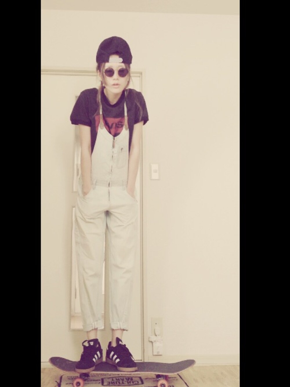 週末にスケートショップ行って コンプリートとスケシューnew inした♡ なので今までのエレメントとラストショット! 小窓のスケボーはショップの事務所に飾ってあったやつ 久々にタグにのってみた♪
