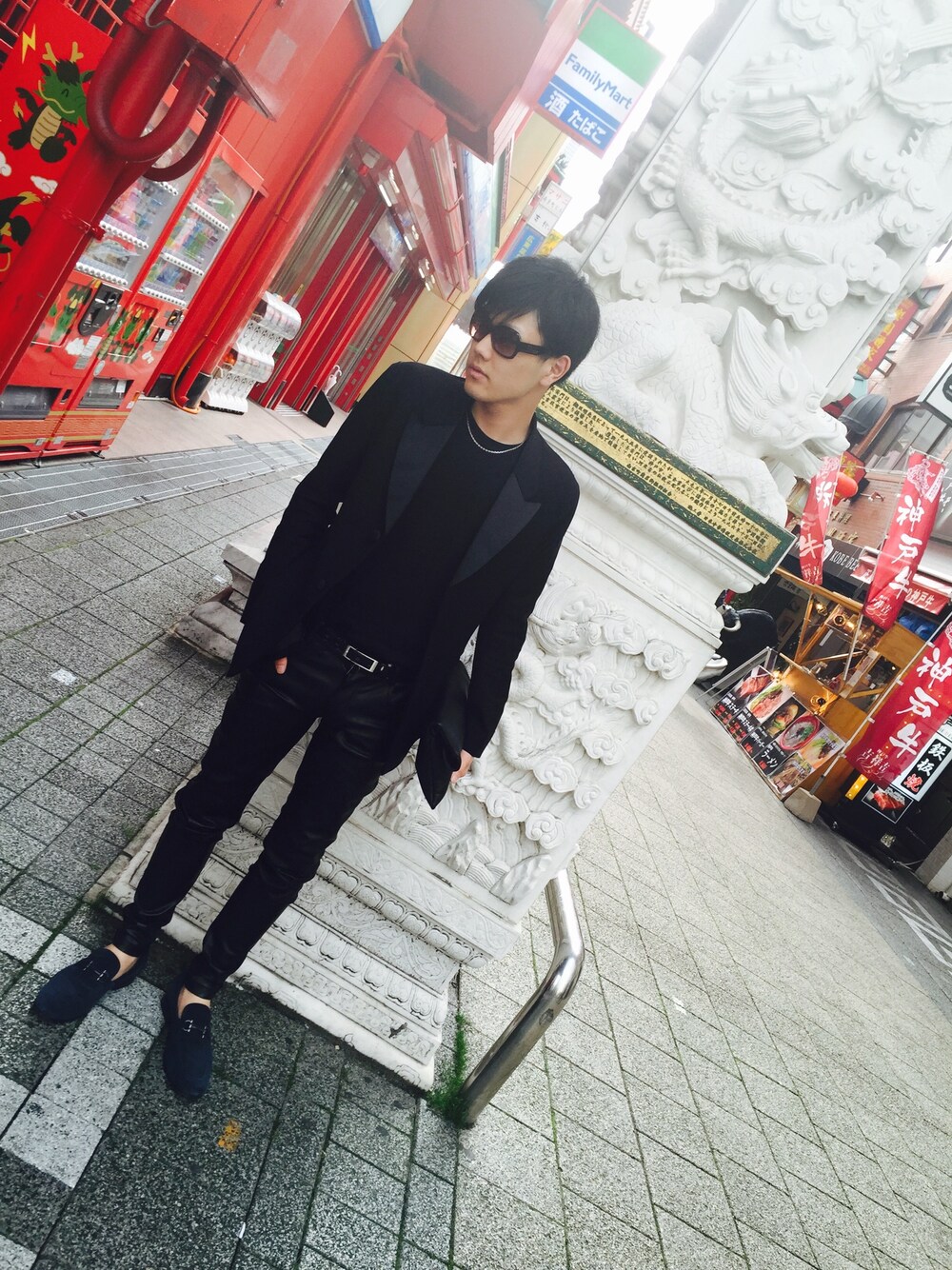 神戸に来ました!あったかい日なので、ジャケット羽織ってdankeのパンツでスタイリッシュに(笑)