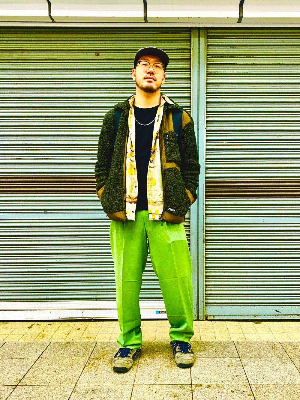古着屋で500円だったライトグリーンのスラックス