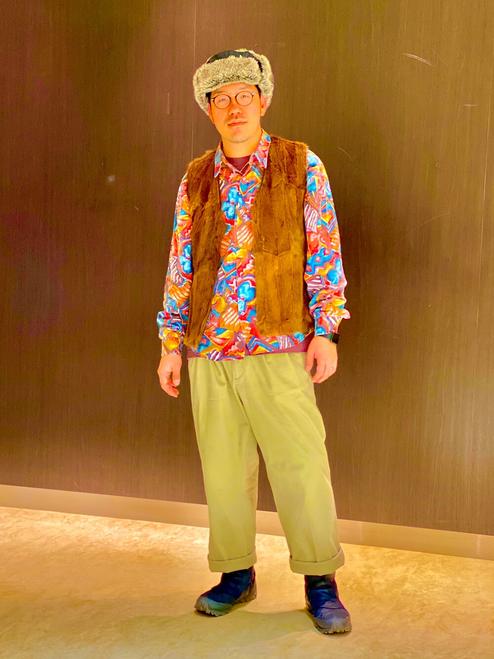 柄シャツ×ファーベスト
