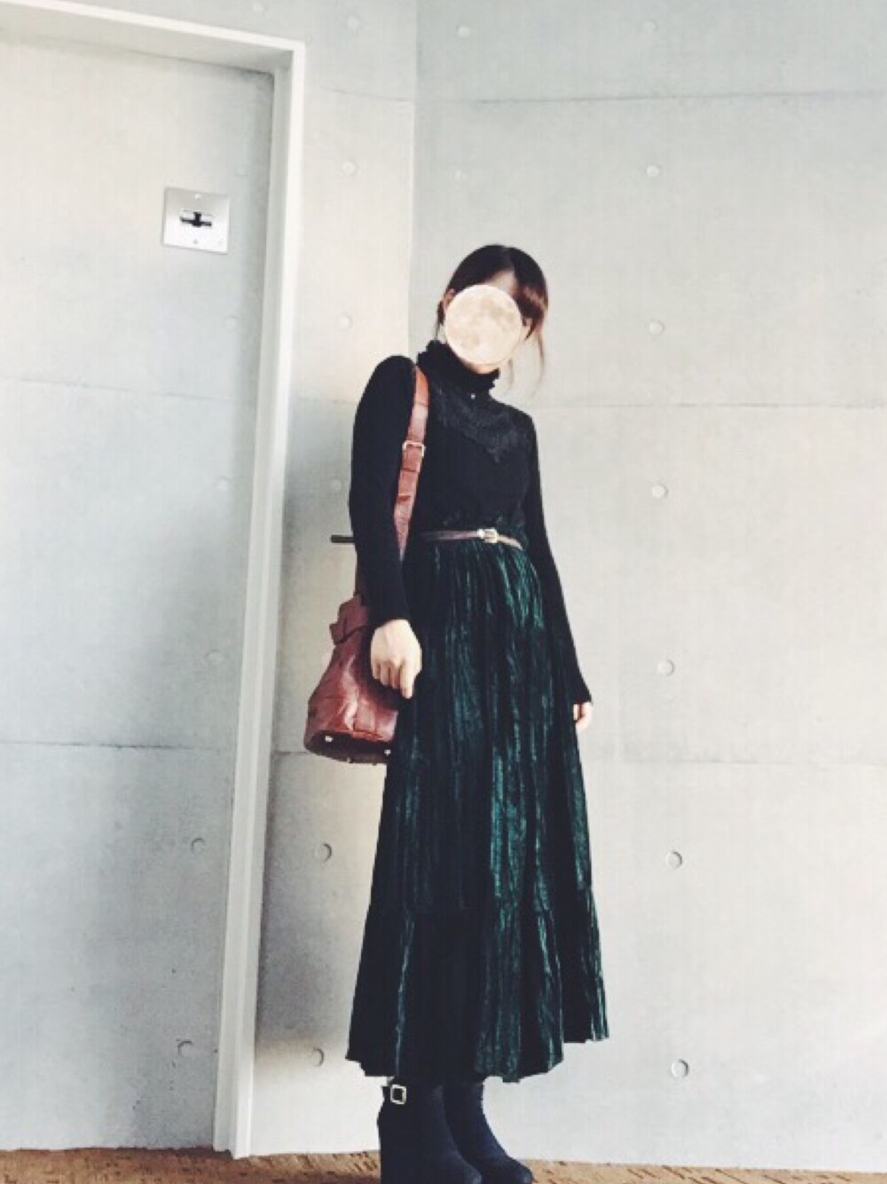 めずらしいベロア素材のティアードスカートです こちらも高円寺の那由多さん タートルネックは首にたくさんフリルがついててお気に入り( ¨̮ )