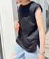 抜群の肌触りと繊細な光沢感が特徴の超長綿で作られた天竺を使用しています。 程よく目が詰まったジャージーで、薄手だけど程よいハリ感もあるので体のラインをカバーしてくれるのもうれしい素材感です。 さらっとした風合いは暑くなっていくこれからの季節にも相性抜群。 こちらのノースリーブは、少しゆったりしたサイズバランスで着丈が長めのシャツテール。 肩に少しかかるショルダーラインや、裾のラウンドはアウトでさらっと着こなしても様になるデザインです。