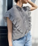 20代後半 / 身長:153cm / ウエーブ / 普段サイズ: 34~36 昨年も大人気だったフリルブラウス! ややシアーで清涼感ある質感がこれからの季節に着やすい。 コットンシルクの艶感もカジュアルなアイテムとのコーデを格上げしてくれる。 フレンチスリーブデザインが肩回りを華奢見せしてくれる。 クロップ丈のデニムは小柄さんの強い味方! バランスよく履けるのでおすすめ。 ※着用シューズのサイズについて:着用しているシューズはサンプルの為、モデルが普段着用しているサイズではございません。