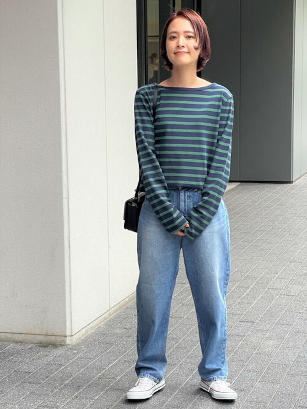 20代後半 / 身長:153cm / ウエーブ / 普段サイズ: 34~36 人気のGIZA COTTONシリーズのロングスリーブTが入荷しました。 すっきり見えるネックデザイン、程よいゆるさのサイズ感が着回ししやすく、1枚で気映えします。 秋にはトレンドのツイードジャケットに合わせてトラッド感のあるスタリングを楽しみたいです。 ※着用シューズのサイズについて:着用しているシューズはサンプルの為、モデルが普段着用しているサイズではございません。