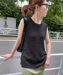 20代後半 / 身長:153cm / ウエーブ / 普段サイズ: 34~36 コットン×リネン素材なので清涼感があり、シャリ感のある肌さわりで着心地が良いニット。 網柄が引き立つ表情のある1枚は魅力的な1枚。 裾にはスリット入りで、ロング丈のボトムにも合わせやすいです。 ※着用シューズのサイズについて:着用しているシューズはサンプルの為、モデルが普段着用しているサイズではございません。