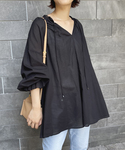 20代後半 / 身長:153cm / ウエーブ / 普段サイズ: 34~36 キャンディースリーブがポイントの気映えブラウス。 袖口はゴム仕様で調節しやすく、ロングシーズン活躍しそうです!! ヒップが隠れるぐらいの長さですが、シアー素材なのでブラックでも重く見えないです。 定番のデニムスタイルにブラウスでフェミニン要素をプラスしました。 ※着用シューズのサイズについて:着用しているシューズはサンプルの為、モデルが普段着用しているサイズではございません。